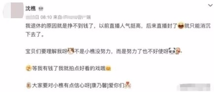 由于进入娱乐圈多年依旧不温不火,沈樵便改行当起了主播。