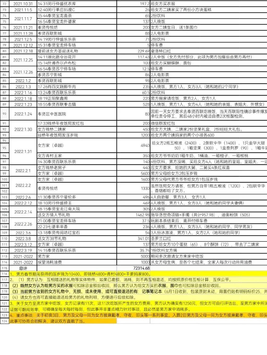 除了要回零星的3422元,其中连母亲包的水饺也算进去了,平均8毛一个……