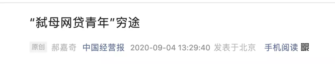 2020年9月4日,中国经营报发表了一篇名为《“弑母网贷青年”穷途》的文章。