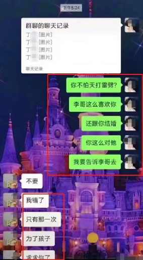 刚好,群内有一人是新郎的好友,他看到后找到新娘质问:“李哥(新郎)这么喜欢你,你却这样对他?”