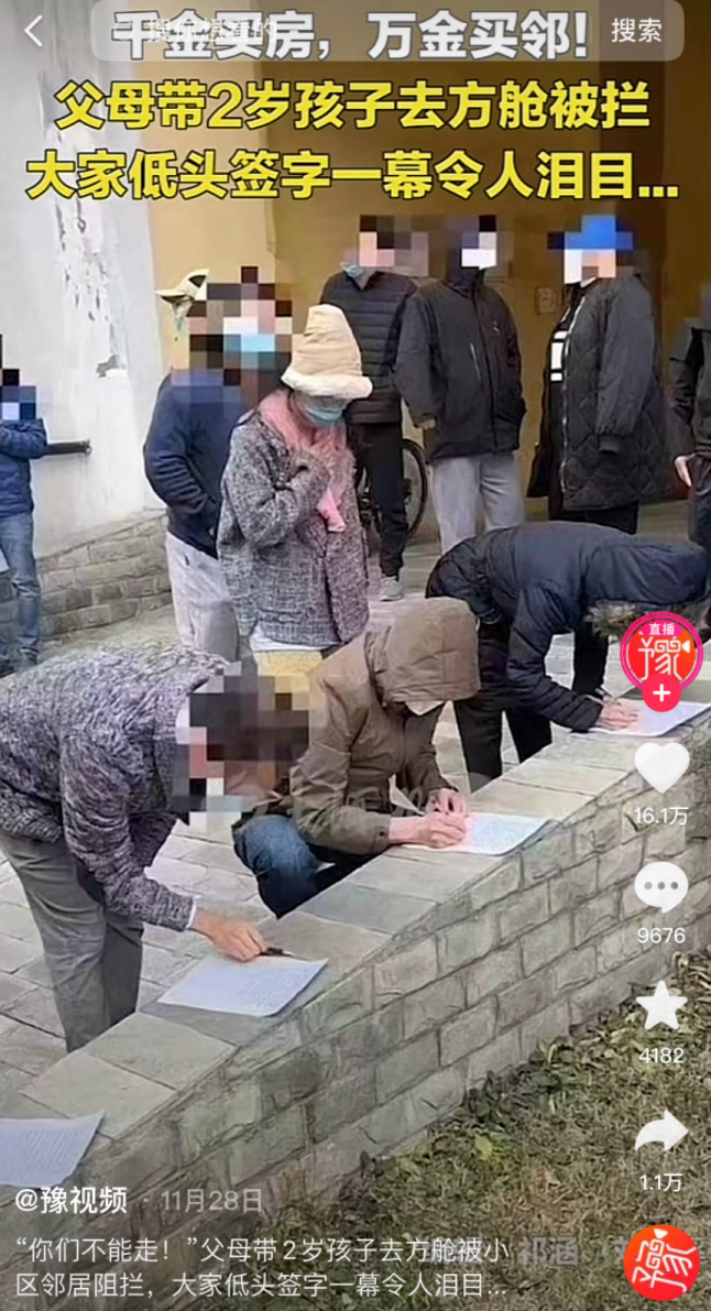 小区楼下,一位位邻居或站在寒风里,或趴在冰冷的台阶上,郑重地签下自己的名字,承诺一切后果自行承担。